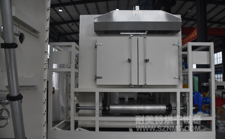 4、烘干部分總長(zhǎng) 50000m,分1段,進(jìn)出料端2500mm,中間9段每長(zhǎng)5000mm,爐體前后裝有急停開關(guān)。